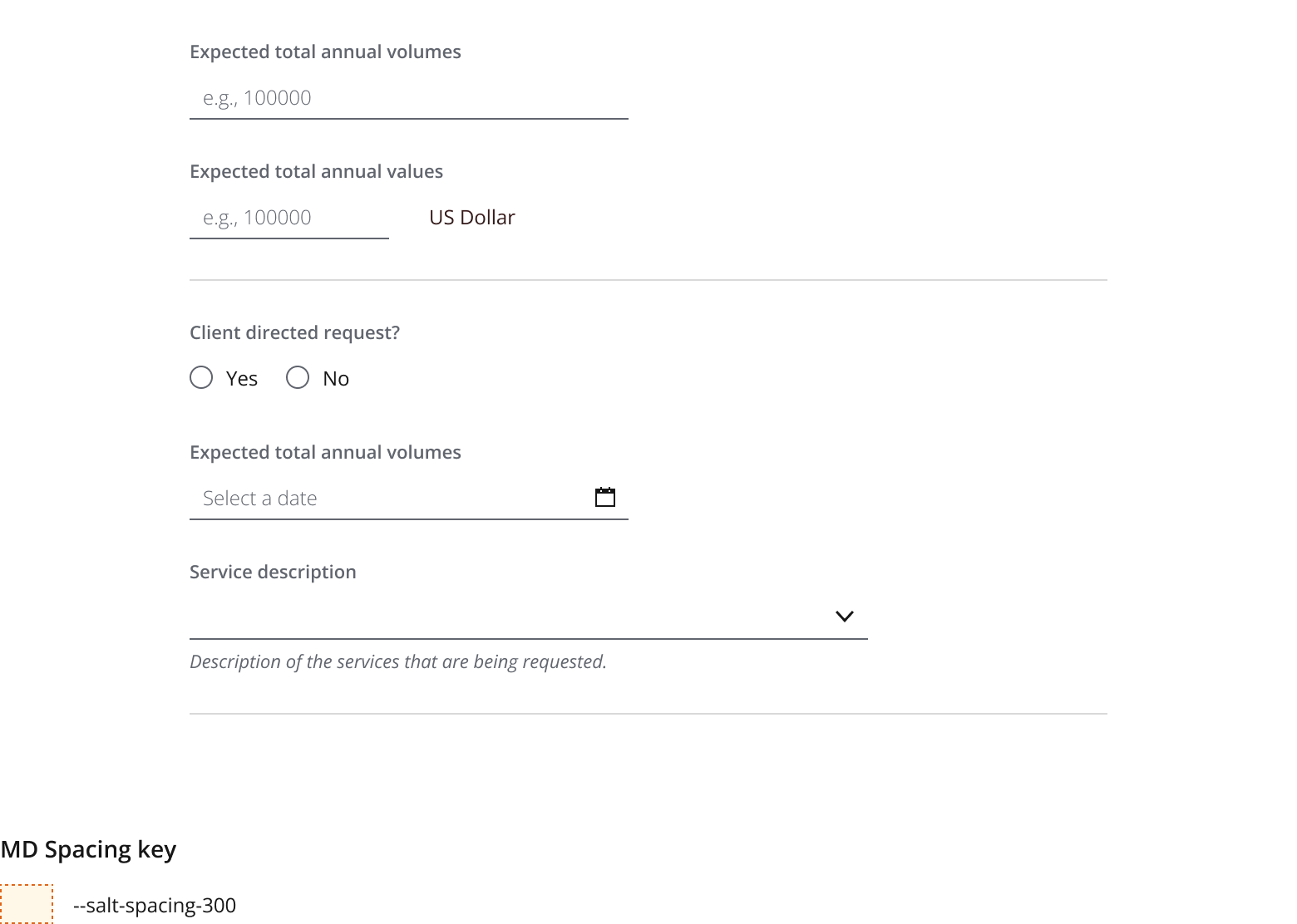 You may need to display a data-rich form in a small viewport without reducing the component density. In this case, you can reduce or remove spacing to achieve a compact form layout.